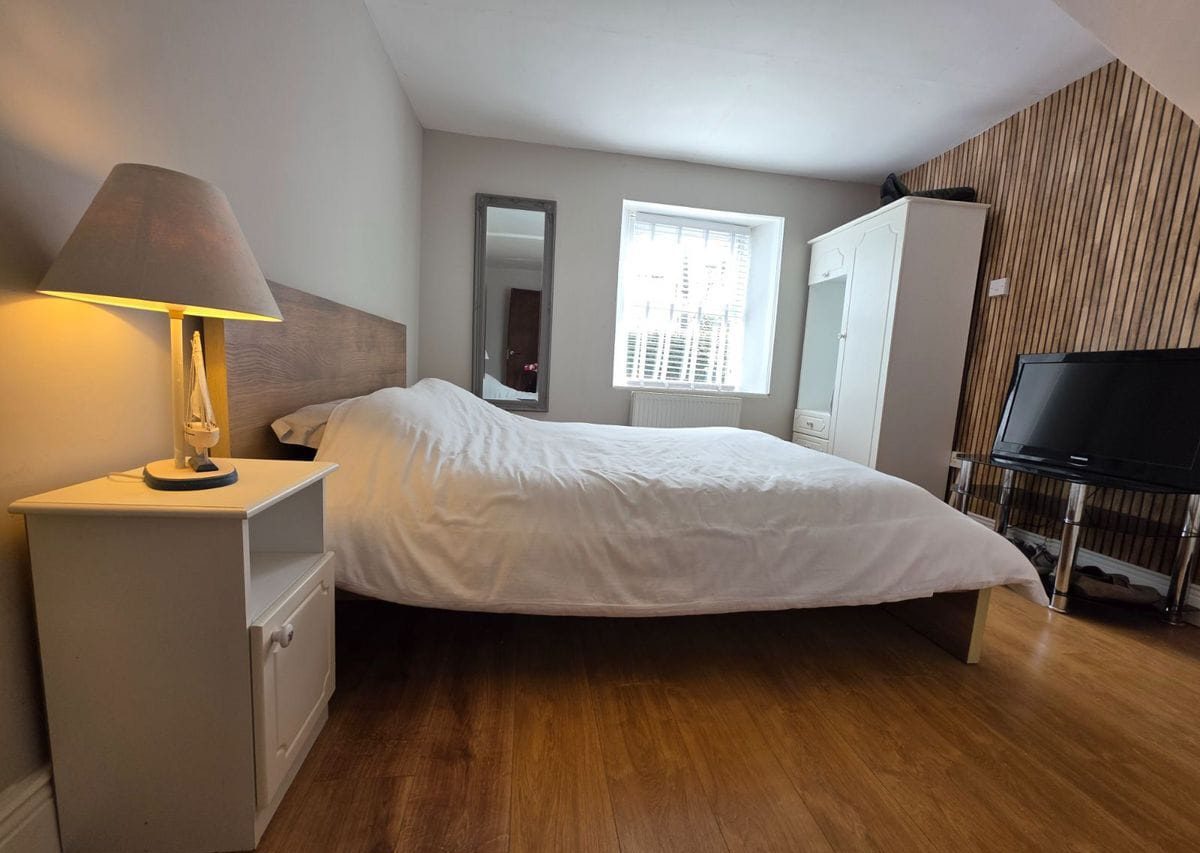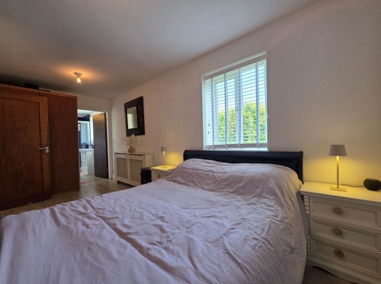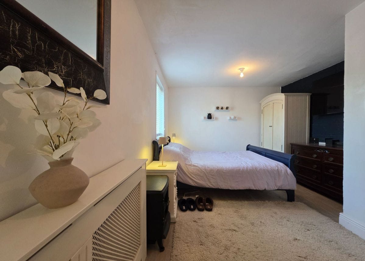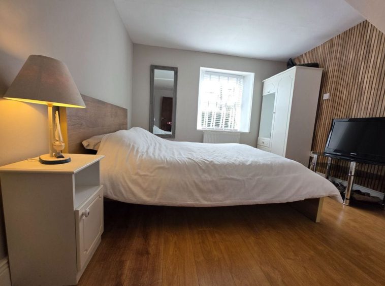 Bedroom B: Approx 3.55m x 3.28m: Situated to the front of the home, it again would accommodate a super king bed or twin beds, with wood effect flooring.
