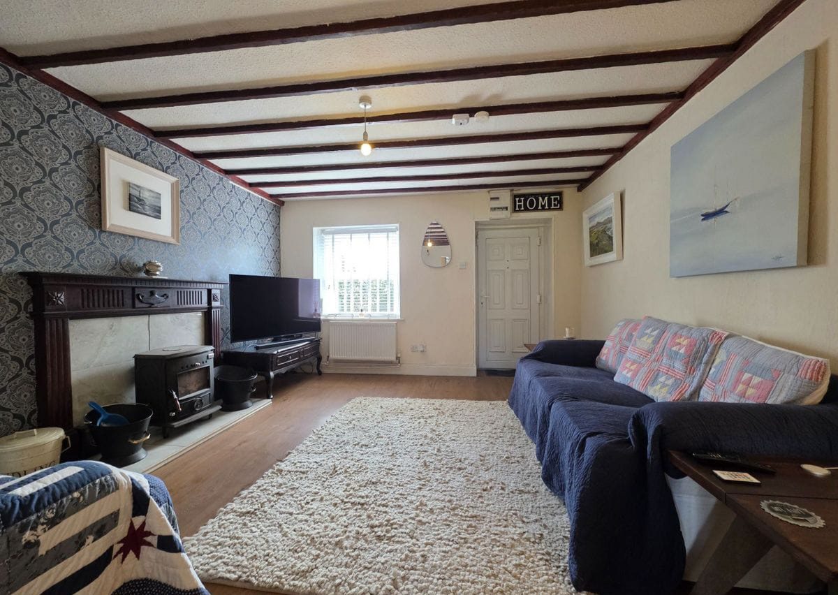 Sitting Room: Approx 4.35m x 3.93m This is a great room. It is naturally bright and situated at the front of the home overlooking the front garden. It benefits from a feature fireplace with tile surround and stove. With ornate ceiling and wood effect flooring.