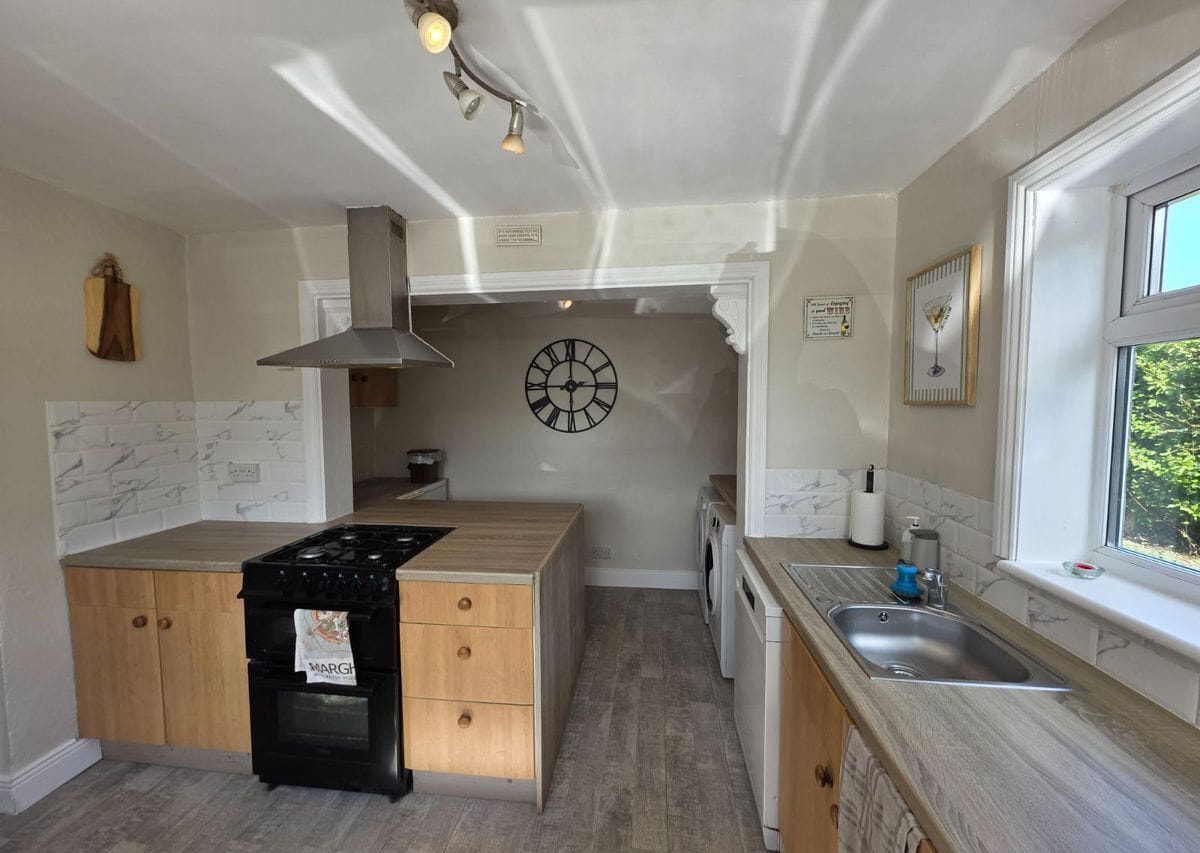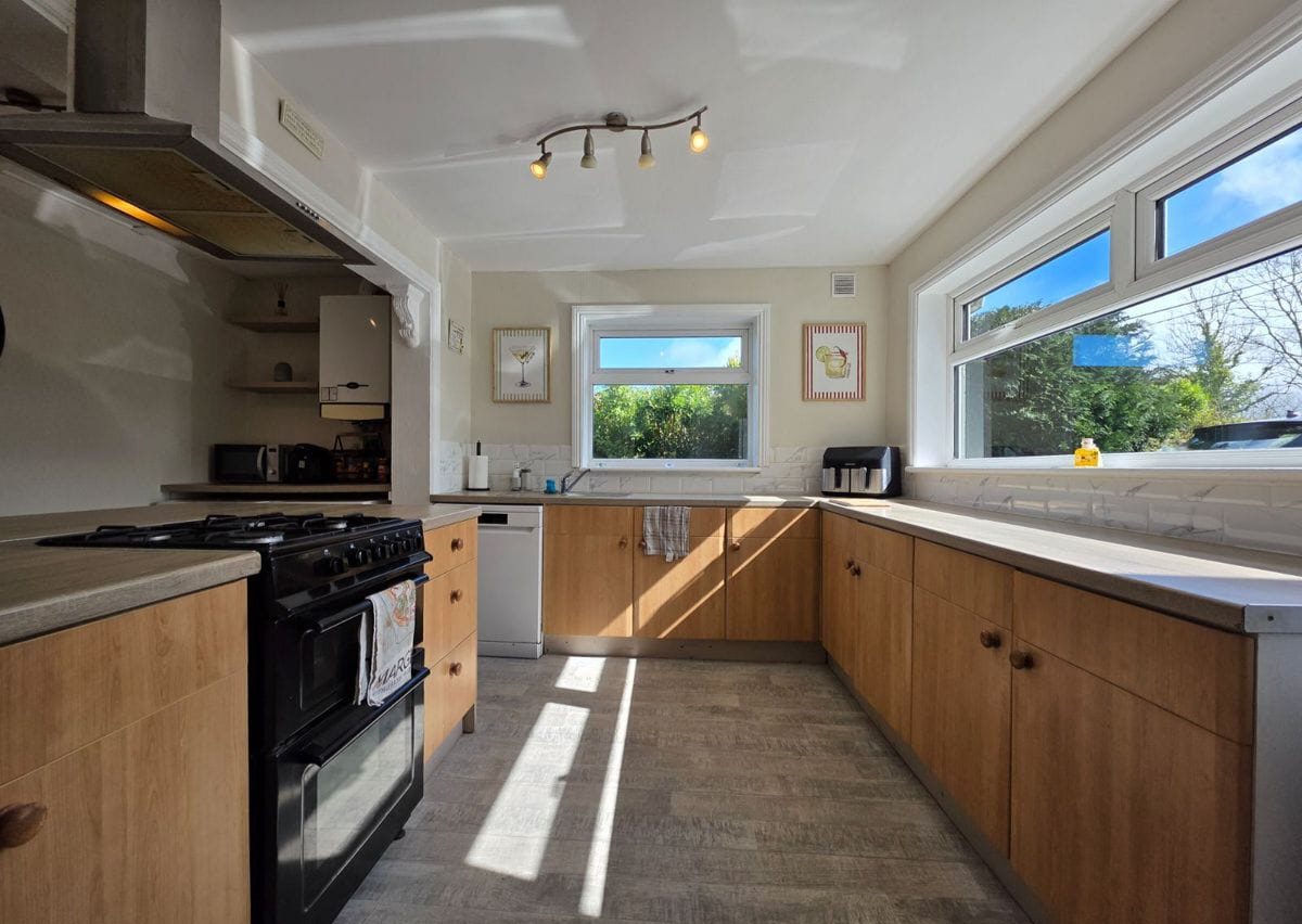 Kitchen: Approx 4.67m x 3.33m Looking out to the front of the home this room has ample storage and counter space. It is plumbed for washing machine, dryer and dishwasher. With gas hob and extractor fan.