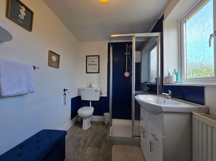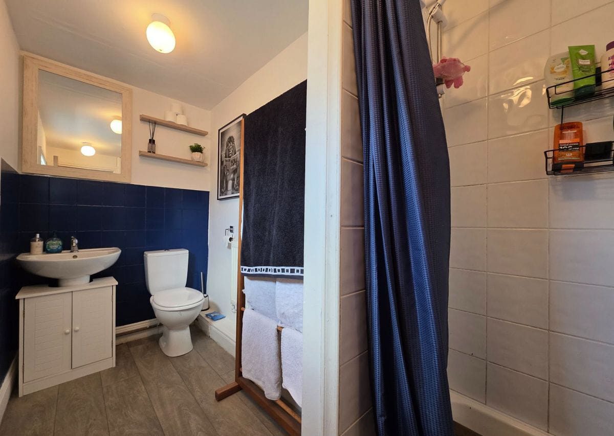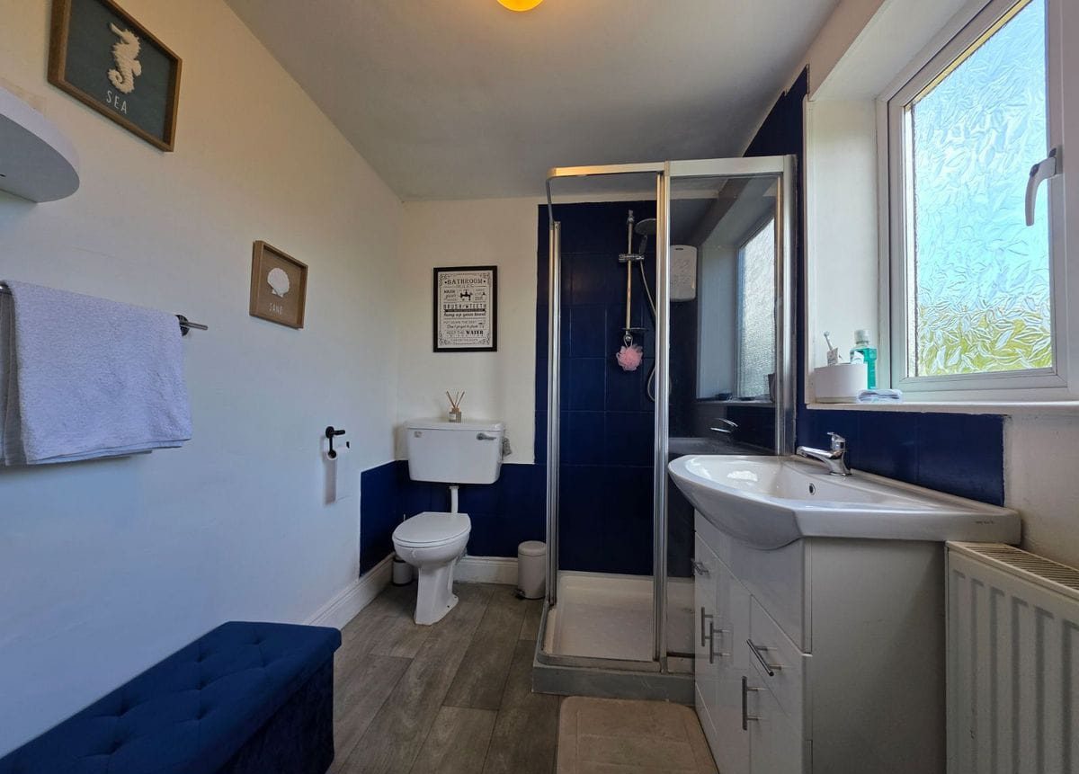 Guest WC Approx 2.95m x 1.34m: Complete with electric shower, WC, WHB.