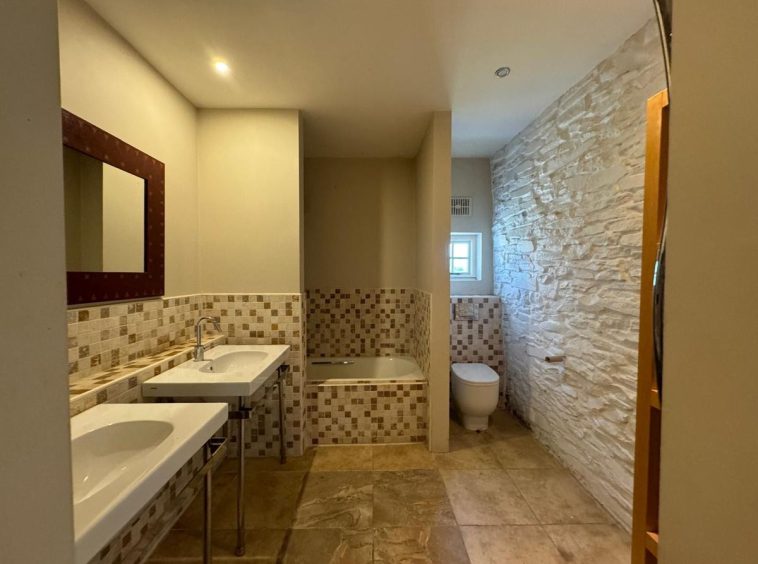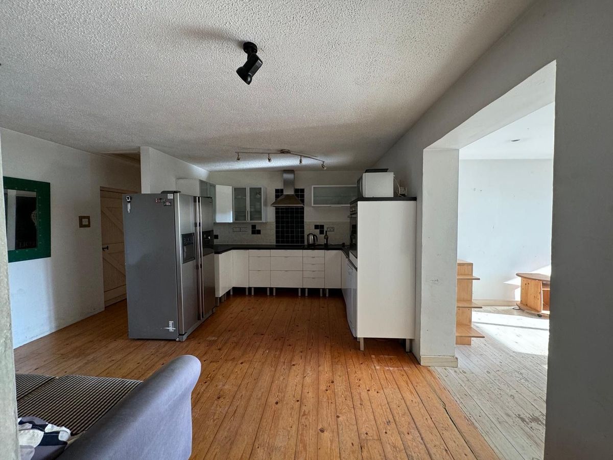 The property features oil fired central heating and double-glazed teak windows.