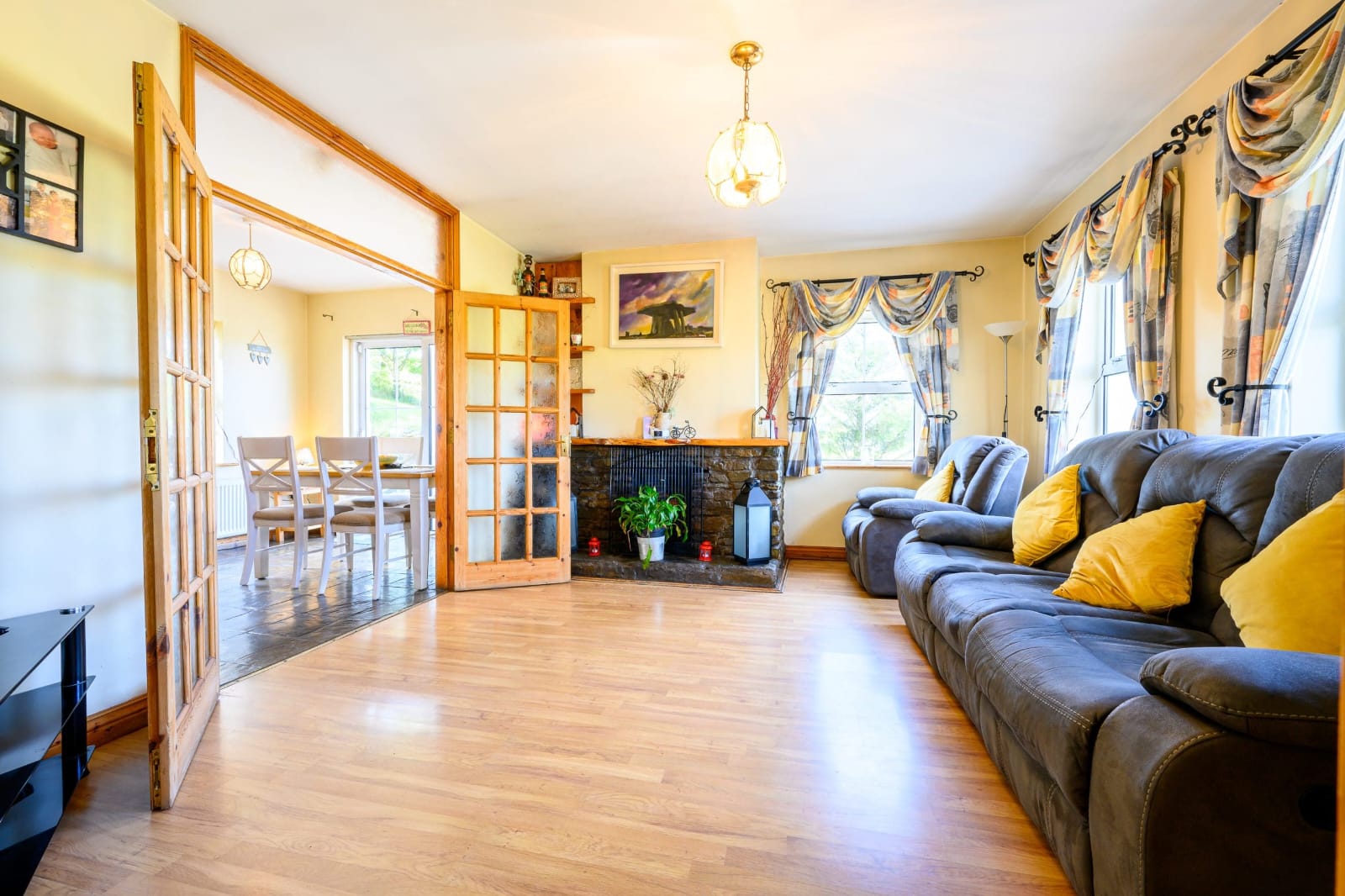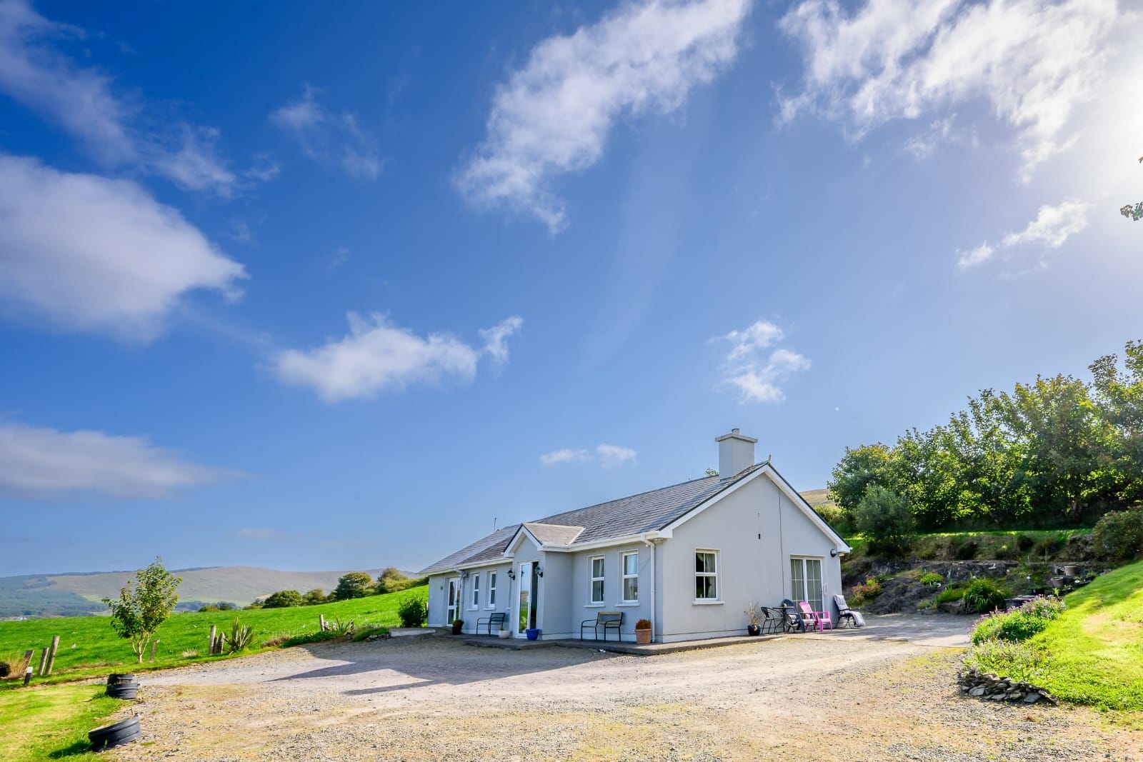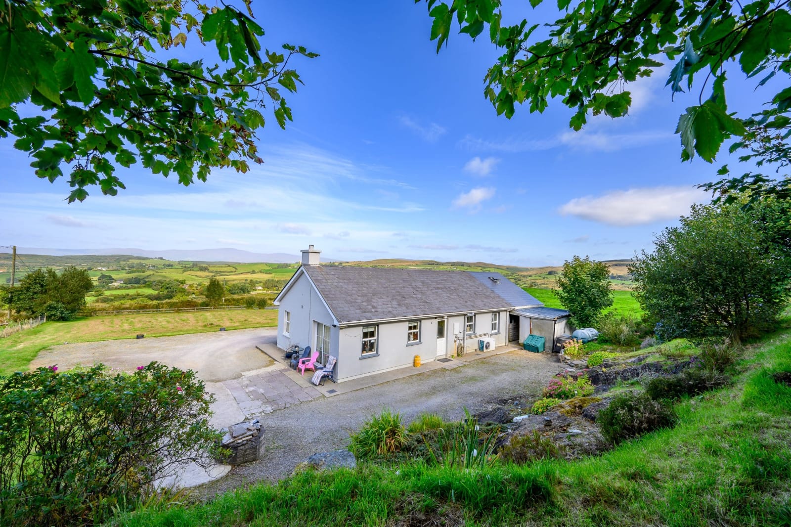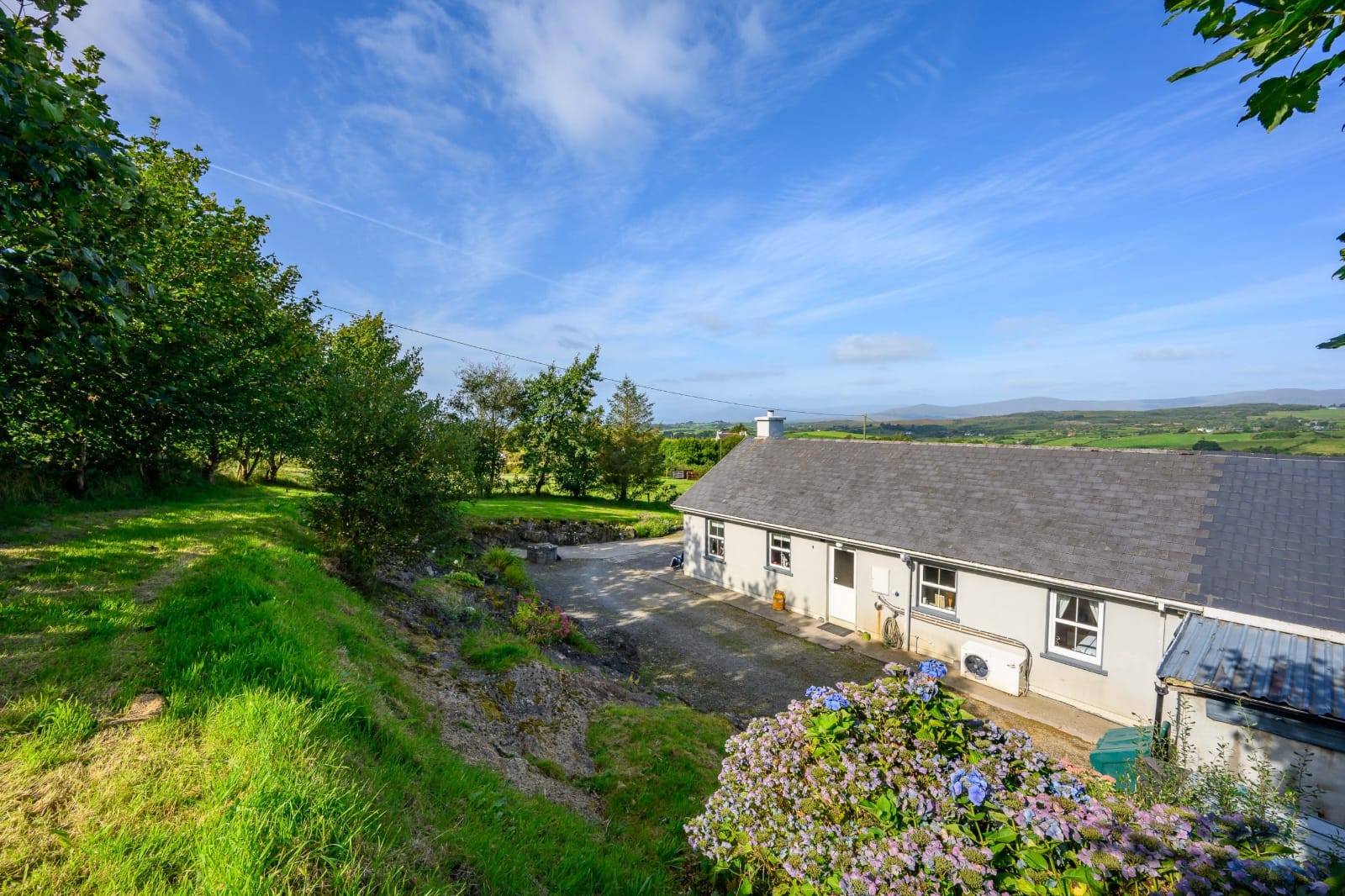 Set on a private elevated half an acre with wonderful gardens and views of the Meelagh Valley and rolling landscape.