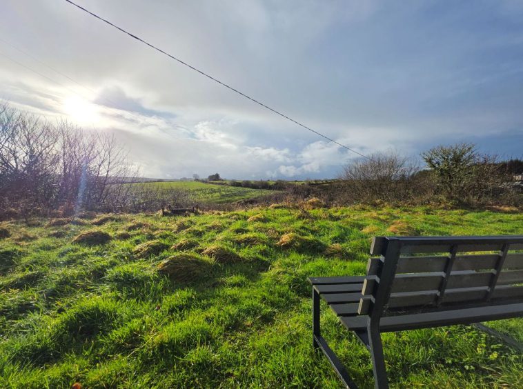 from lovely views. There is a steel shed to the side.