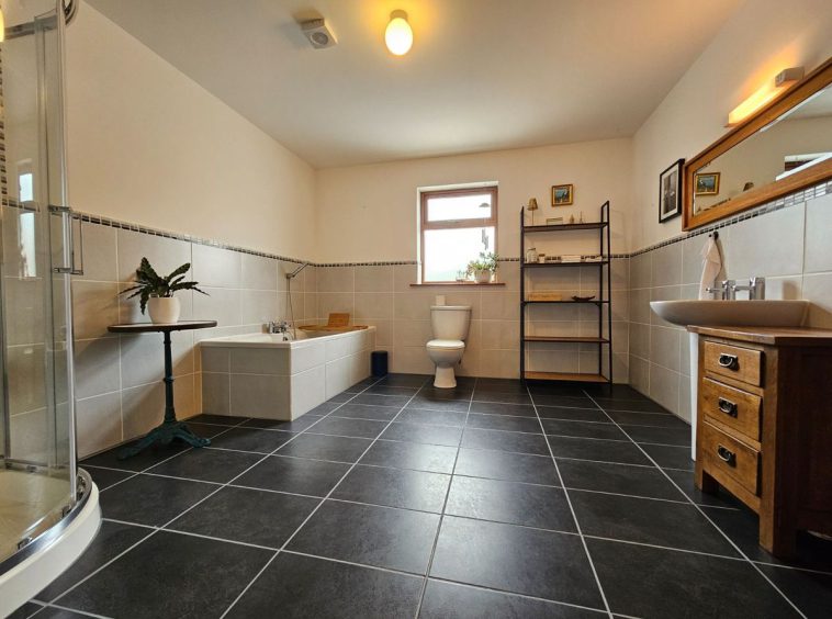 Family Bathroom: Approx 3.55m x 3.35m – This is a really spacious bathroom complete with bath, separate shower, WC, WHB, heated towel rail, tilled floor & part tiled walls.